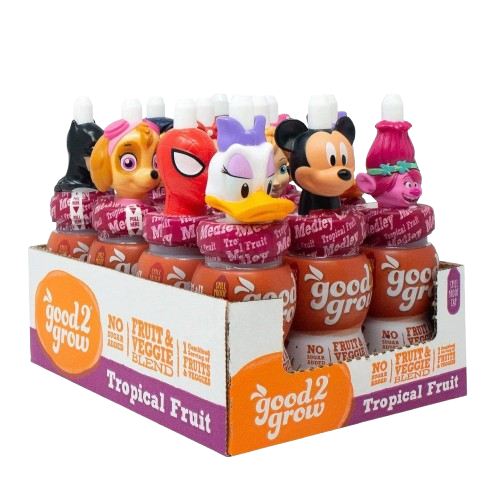 Cada Good2Grow Mystery Pack incluye una selección de jugos 100% naturales con sabores y personajes sorpresa.